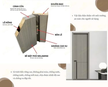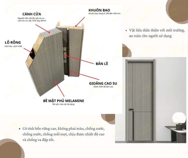 Lõi cửa đặc biệt giúp hạn chế tiếng ồn và duy trì nhiệt độ ổn định, tạo không gian yên tĩnh, thoải mái.